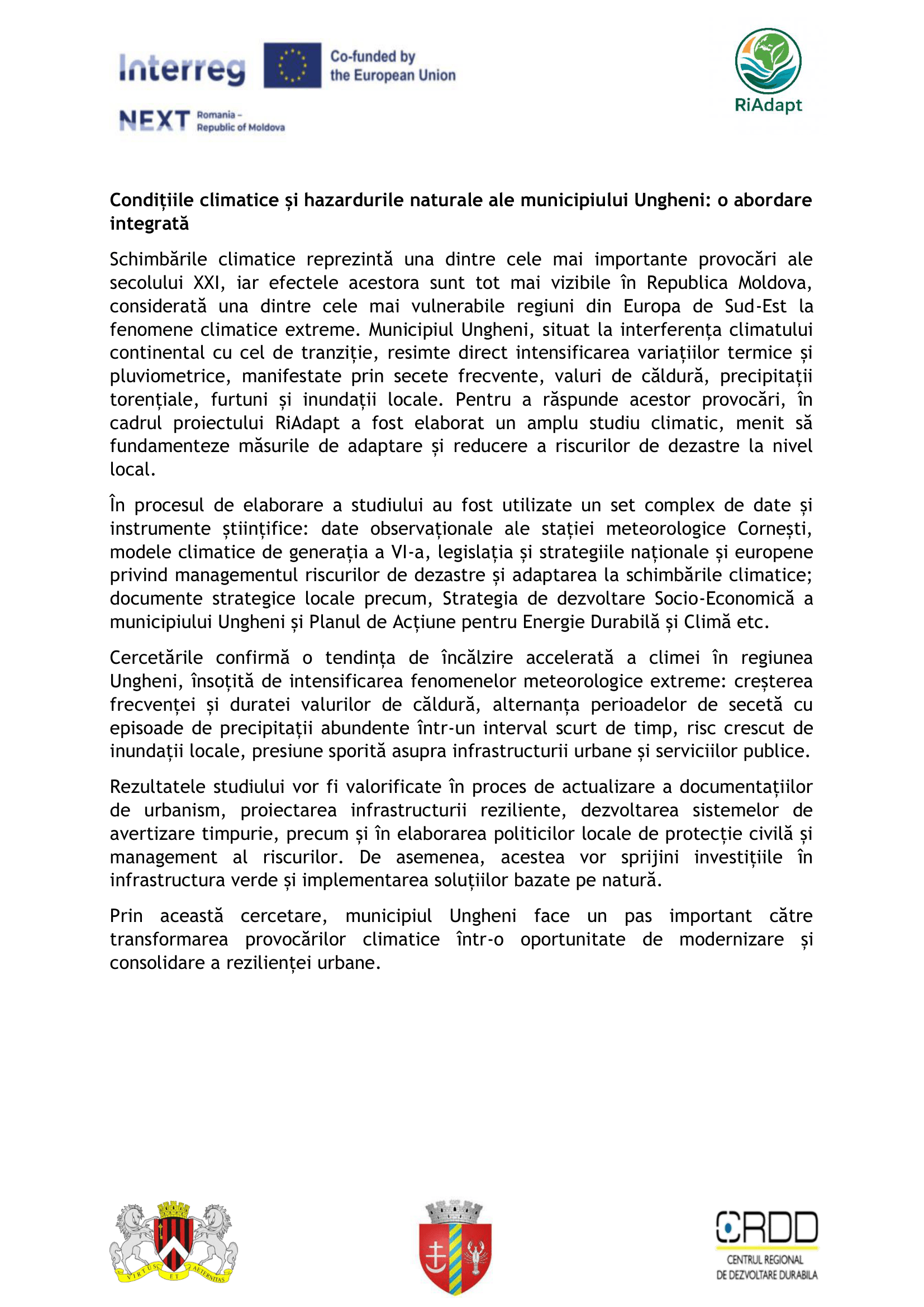 Condițiile climatice și hazardurile naturale ale municipiului Ungheni: o abordare integrată